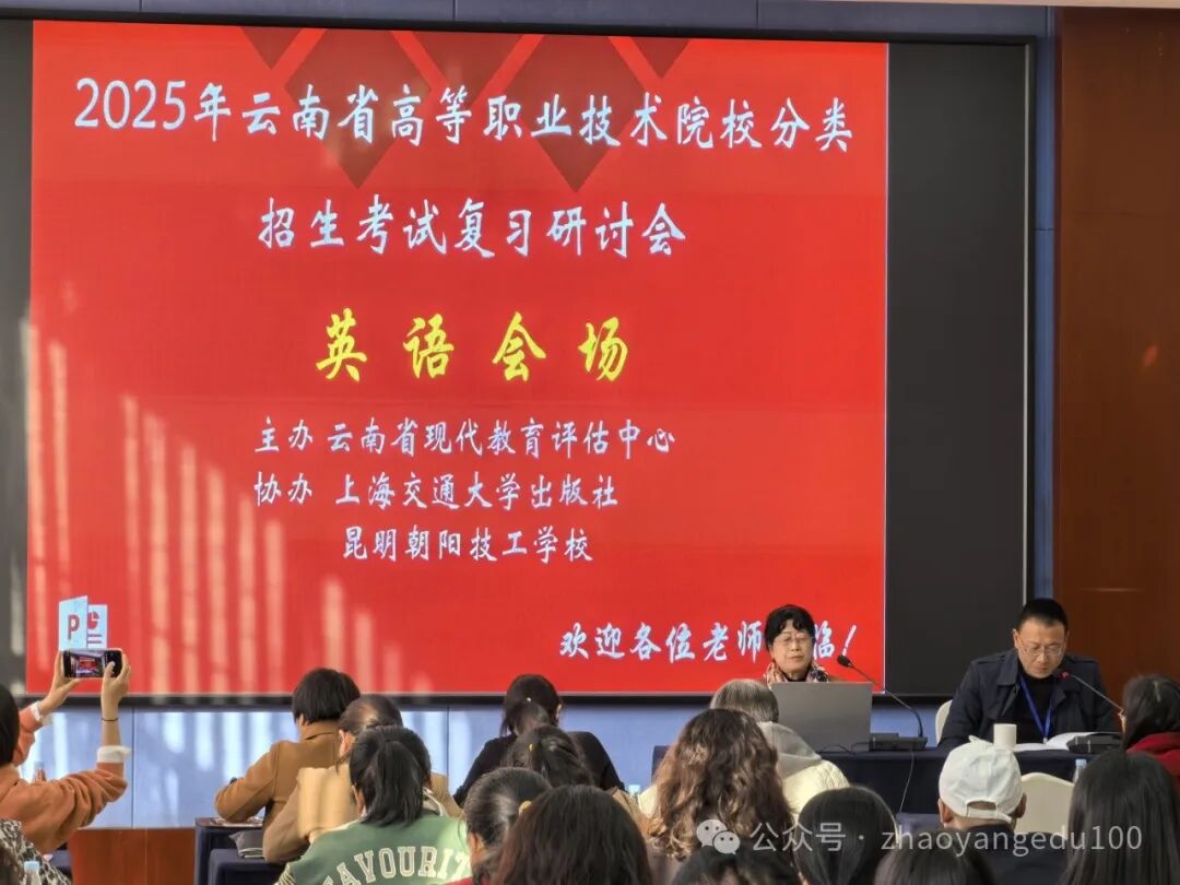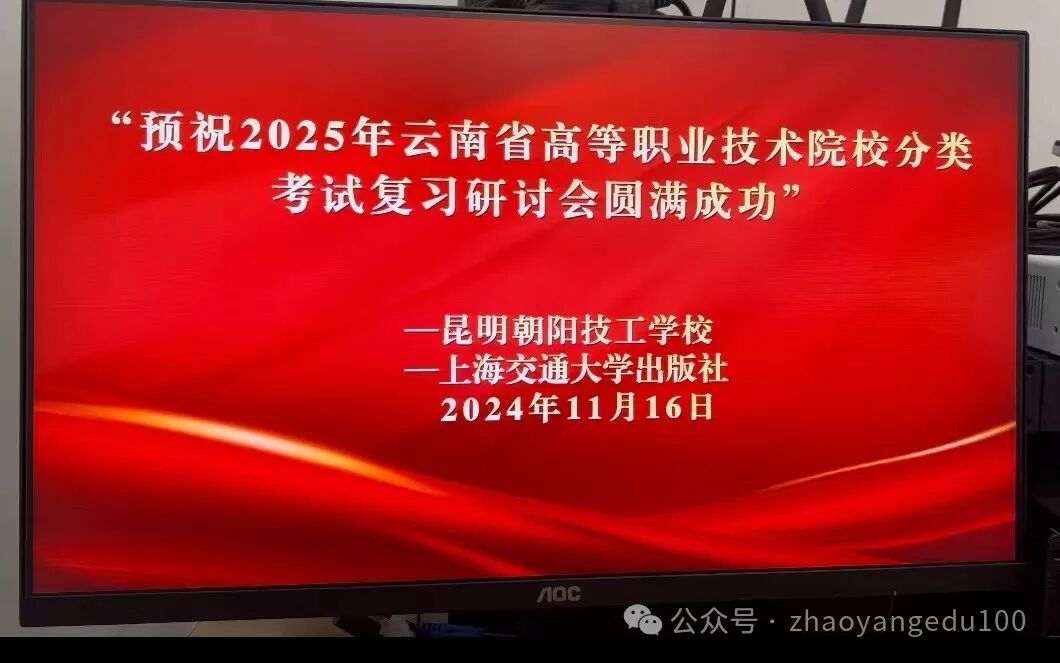 2024年11月16日上午9时,由云南省现代教育评估中心主办,上海交通大学出版社、昆明朝阳技工学校协办的“2025年云南省高等职业技术院校分类考试复习研讨会”在昆明市隆重召开。