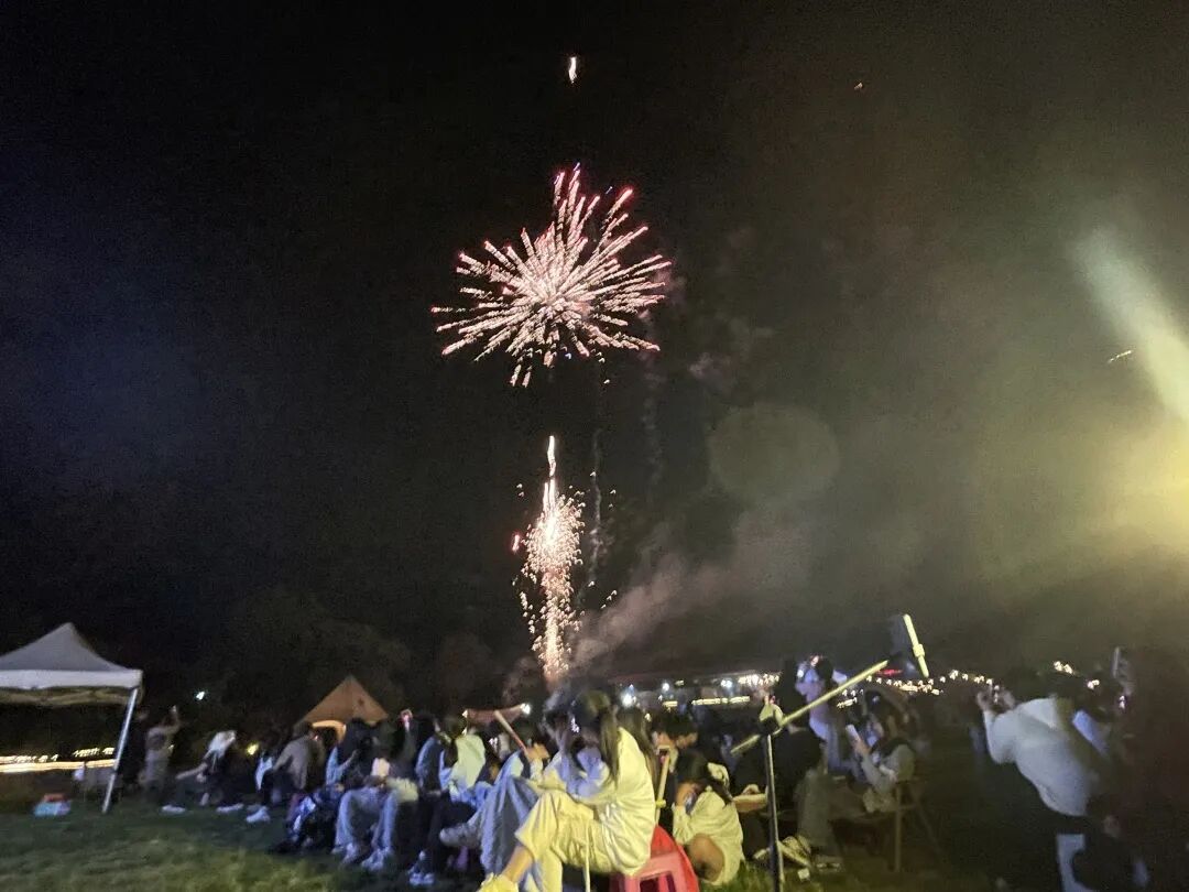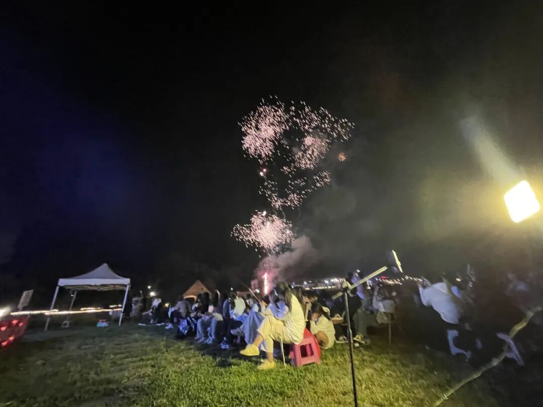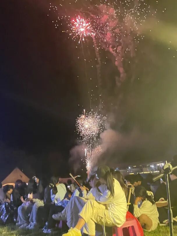 随后,一场绚丽的烟花表演将活动推向最终高潮。璀璨的烟花在夜空中绽放,照亮了师生们灿烂的笑脸。大家围坐在一起,欣赏着这梦幻般的美景,欢呼雀跃声回荡在夜空。