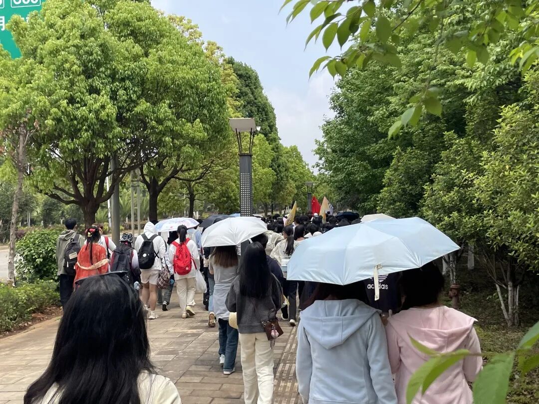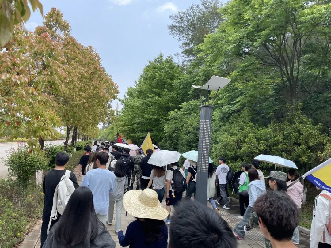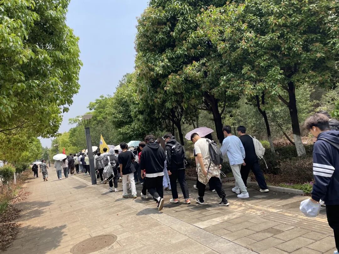 清晨,朝阳初升,师生们精神抖擞地踏上徒步征程。11 公里的路线蜿蜒穿过绿意盎然的郊野公园与乡间小道,沿途樱花纷飞、溪流潺潺,为徒步增添诗意。尽管路途漫长,同学们却热情高涨,互相加油鼓劲,用脚步丈量春日的生机与美好。