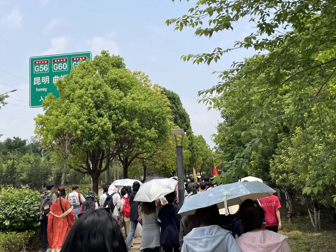 队伍中,老师们不仅时刻关注着学生安全,还化身 “自然讲解员”,结合沿途景色为同学们讲解植物生长、生态保护等知识,让徒步之旅变成了一堂生动的户外课堂。